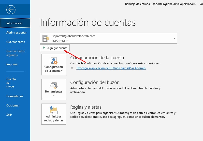 Dentro de ello deberá buscar la opción Agregar Cuenta.